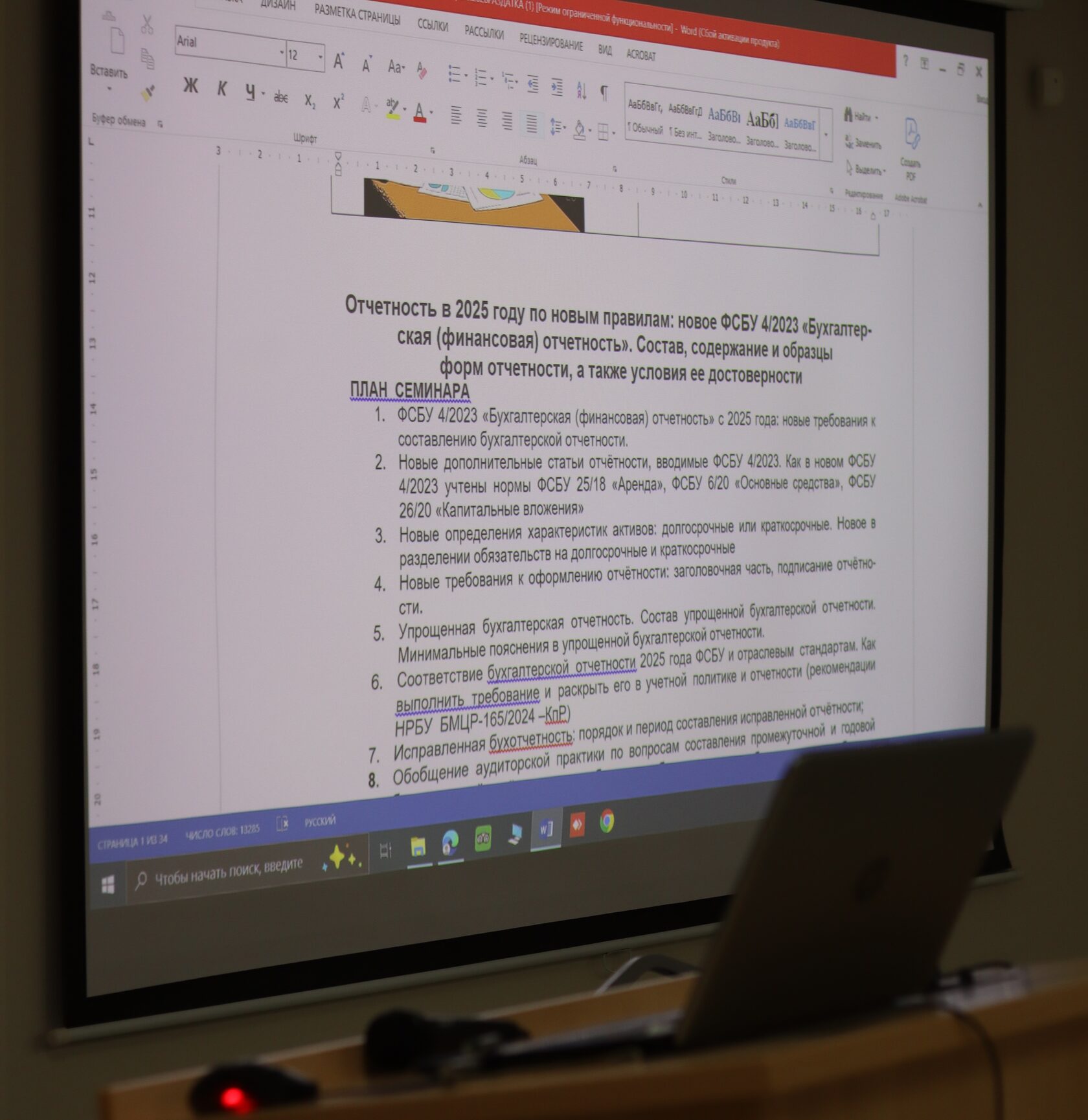 Ключевая тема семинара — подготовка бухгалтерской отчетности за 2025 год по новым правилам. В центре внимания участников был ФСБУ 4/2023 «Бухгалтерская (финансовая) отчетность», который вступил в силу и кардинально меняет подходы к формированию отчетности.